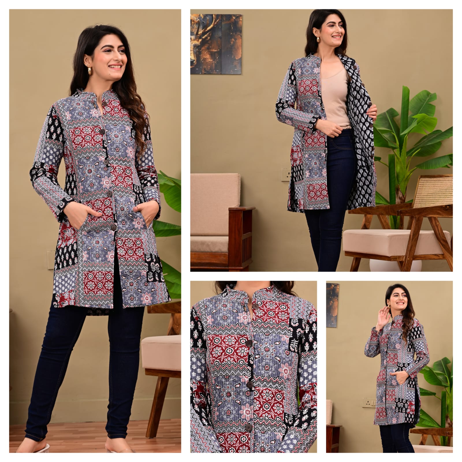 Stay effortlessly stylish with this Black Quilted Women Jacket, a timeless piece that combines warmth, comfort, and elegance. Crafted from premium quilted fabric, it provides superior insulation with a soft inner lining for all-day coziness. The classic black color adds a versatile and sophisticated touch, making it perfect for pairing with any outfit—casual or chic.