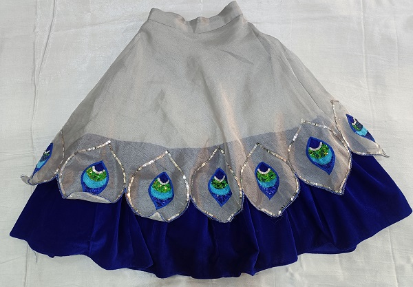 Give your little princess a royal festive look with this stunning blue kids ethnic set. The outfit features a luxurious velvet and tissue top paired with a beautifully flared skirt, creating a rich and elegant silhouette. The ensemble is elevated with intricate handwork using sequins and thread, adding subtle sparkle and traditional charm. A stylish ruffle dupatta completes the look, making it perfect for weddings, parties, festivals, and special celebrations. Soft, regal, and beautifully designed — a graceful choice for your little fashion star!
