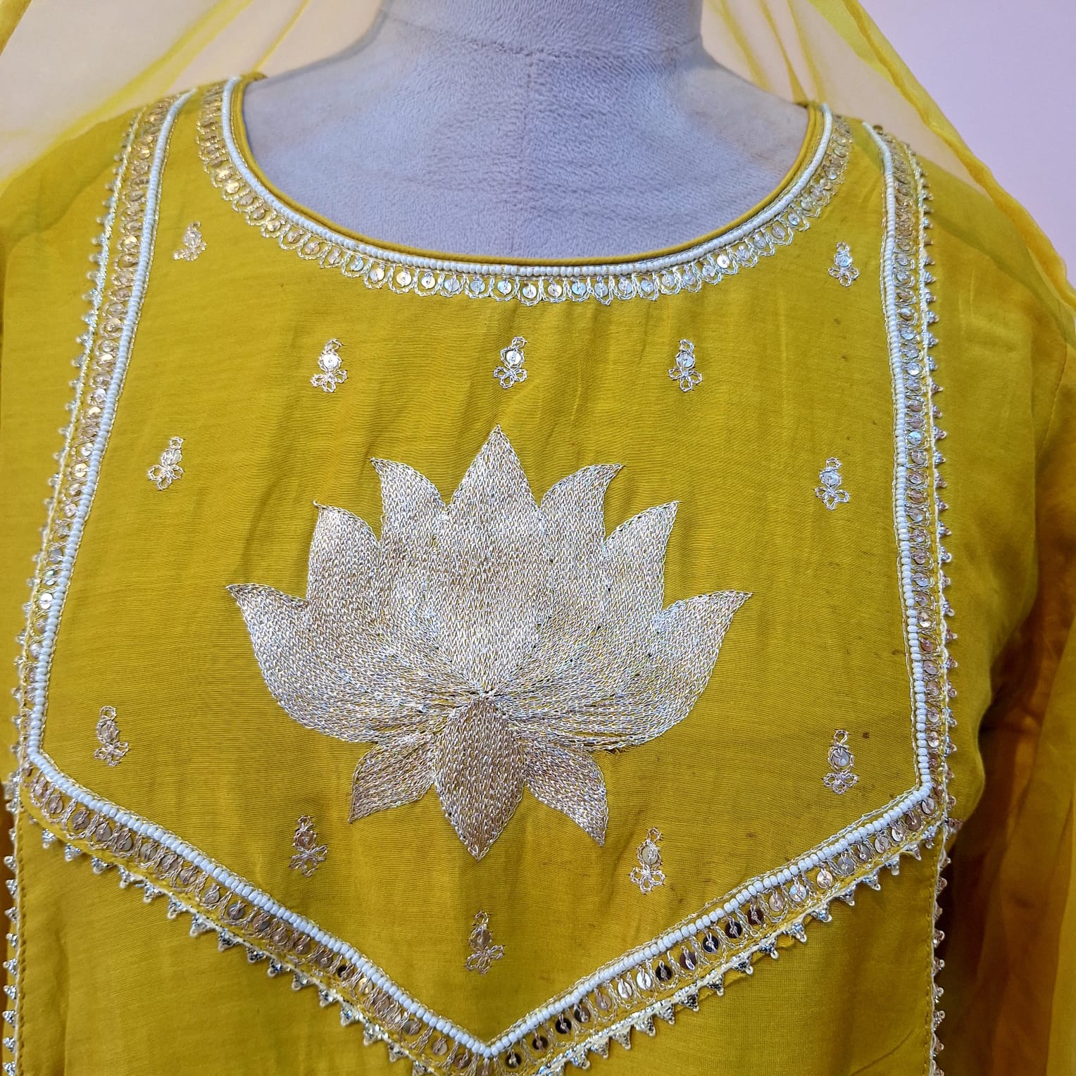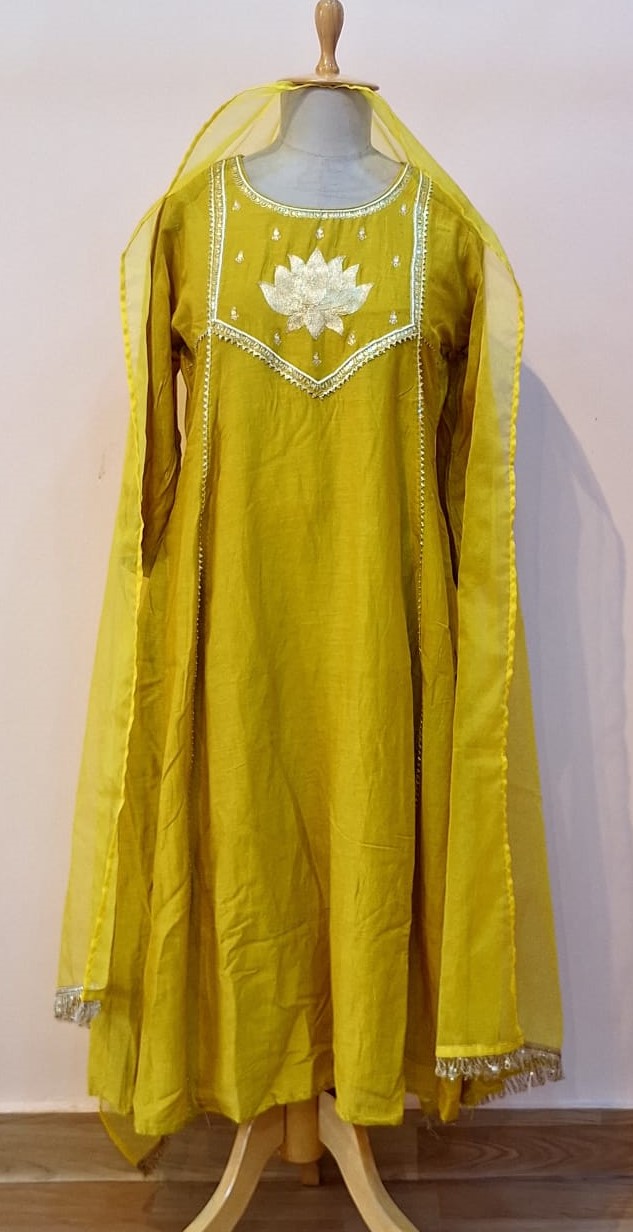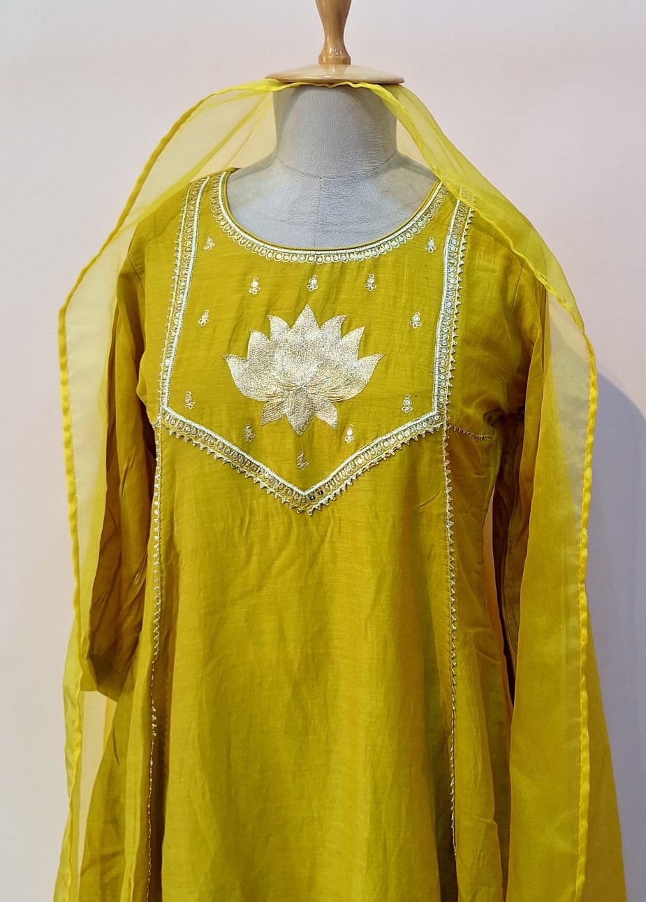 Elevate your festive wardrobe with this elegant Dusty Yellow Kurti, Pant and Dupatta Set, thoughtfully crafted for sophistication and comfort. The kurti is made from soft Mul Chanderi fabric and adorned with intricate Pitton and Pearl handwork, creating a delicate shimmer and artisanal charm. The jaam cotton pants offer a comfortable fit while maintaining a refined silhouette. A sheer organza dupatta completes the ensemble, adding a lightweight, luxurious touch that enhances the overall elegance of the outfit. Perfect for weddings, festive celebrations, and special occasions, this set blends traditional craftsmanship with contemporary style for a truly statement-making look.
