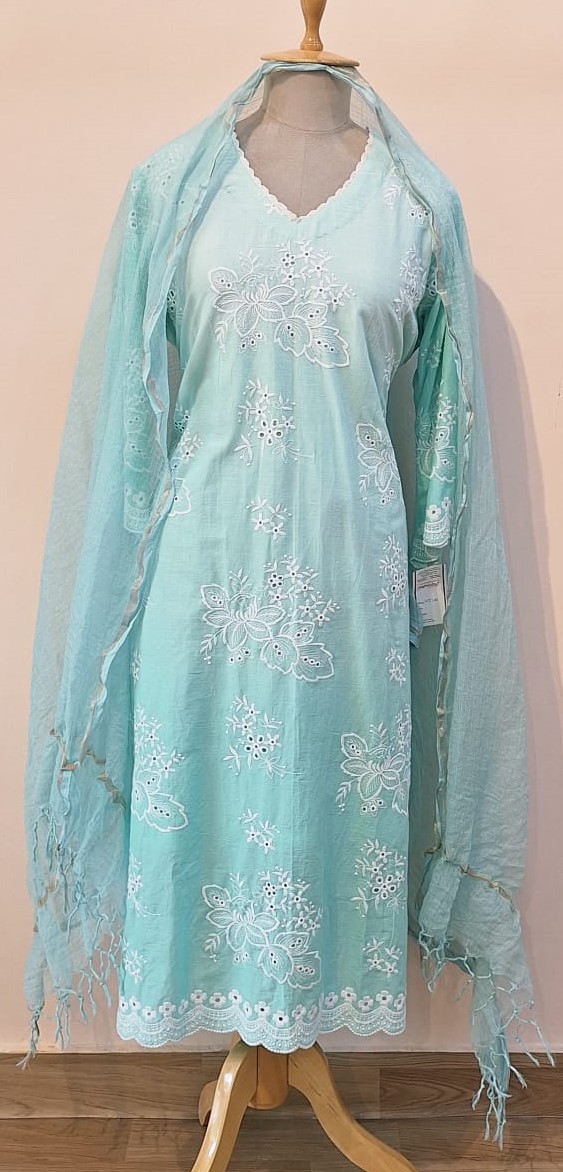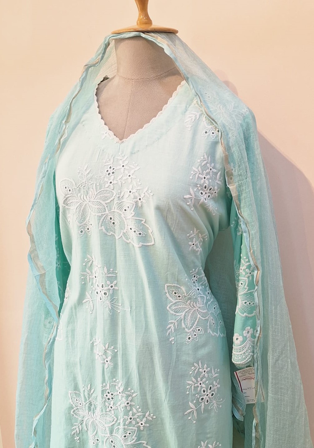 LIGHT C- GREEN EMBROIDERY COTTON SUIT PANT AND DUPATTA SET
