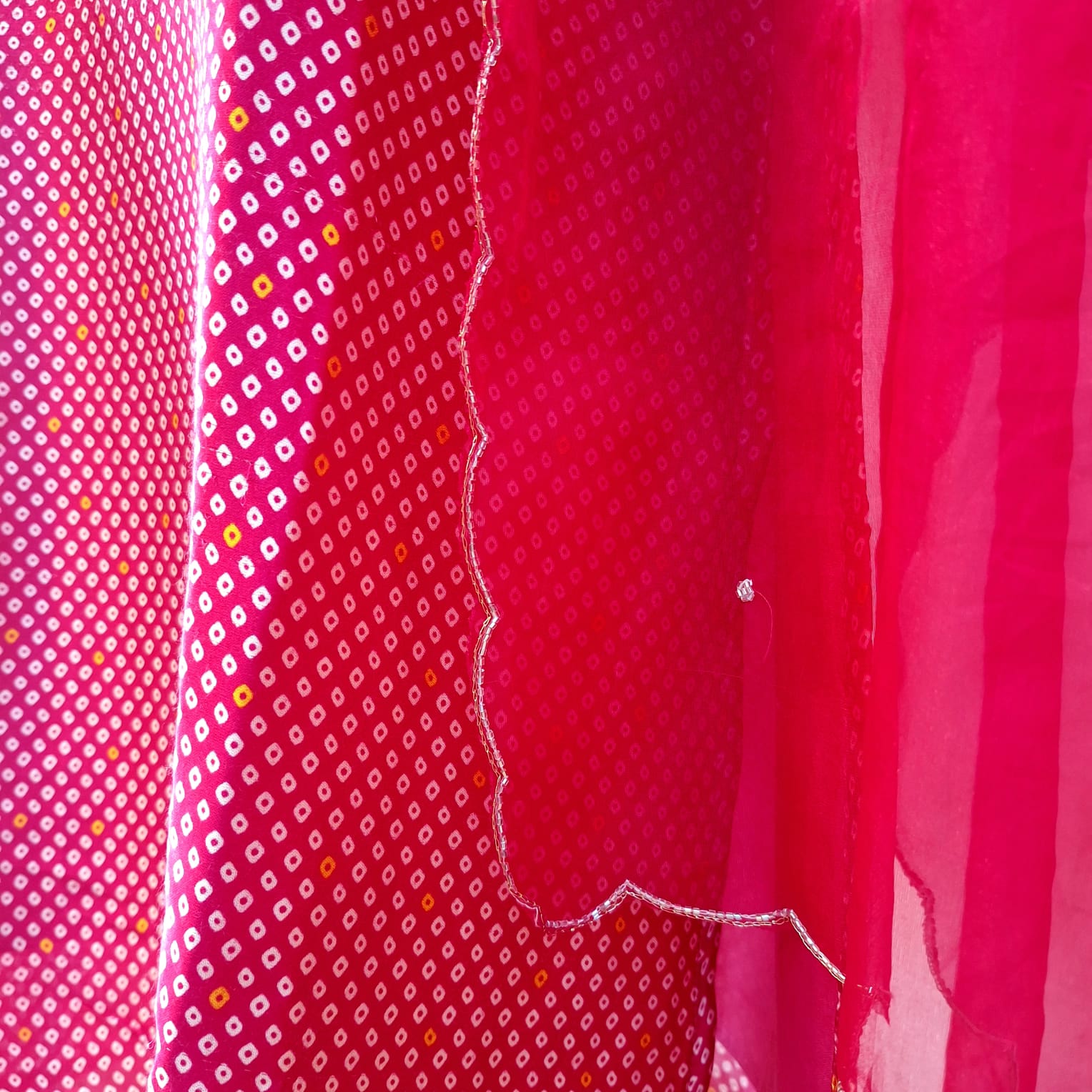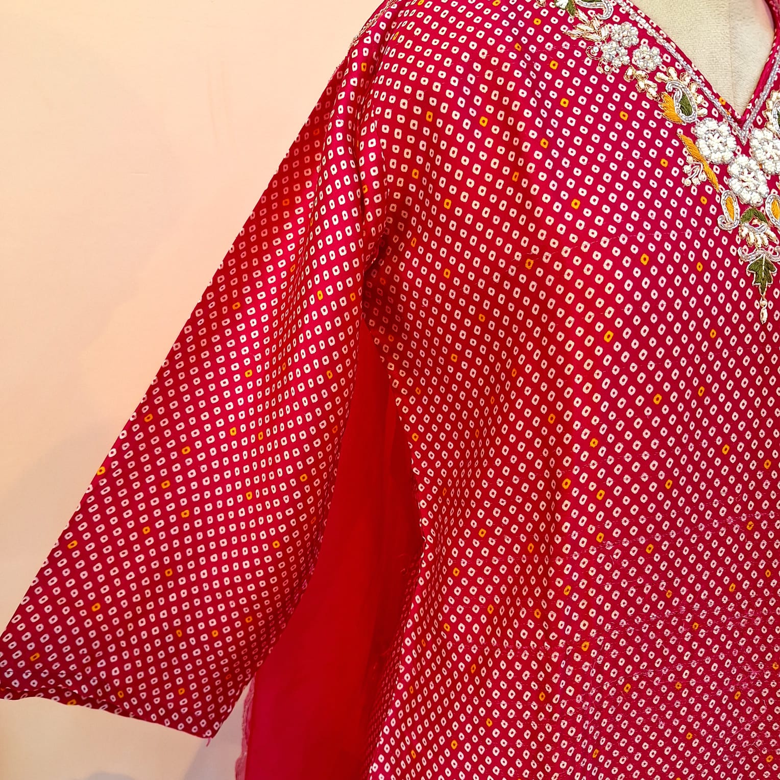 This elegant suit set is crafted in soft, lightweight crepe fabric with Bandhej-inspired digital prints for a vibrant and contemporary look. The Light Red kurta is paired with straight-fit crepe pants for all-day comfort, while the matching digitally printed dupatta completes the ensemble. Ideal for festive occasions, family functions, and cultural celebrations.