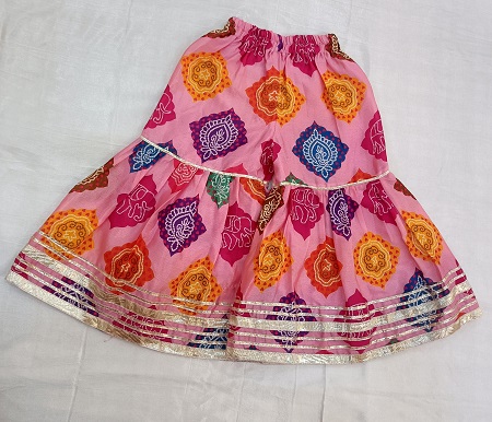 A vibrant and playful multicolor peplum top paired with a matching sharara, perfect for festive occasions and celebrations. The peplum features beautifully highlighted lappa laces on the panels, adding traditional charm and definition to the silhouette. The sharara boasts a flared ghera, also adorned with coordinating lappa lace detailing that adds movement and flair. This cheerful ensemble is tailored for comfort while keeping style at the forefront—ideal for little fashionistas.
