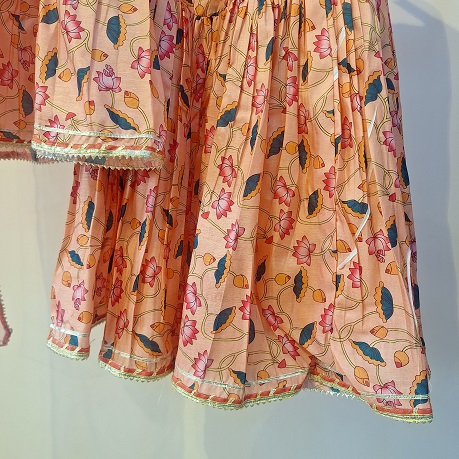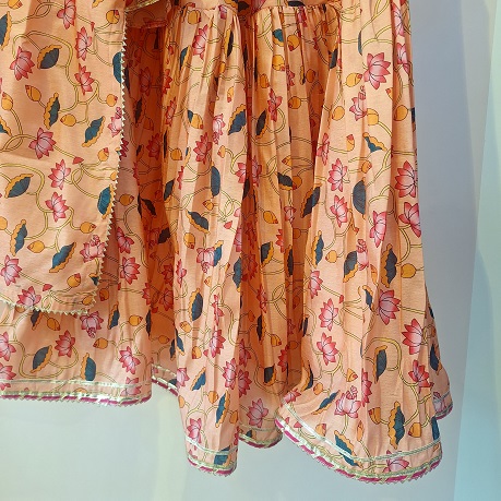 Multi Printed Peplum Sharara with Dupatta Set is a vibrant and festive ensemble designed to celebrate traditional craftsmanship with a playful touch. The peplum top features lively multi prints and is beautifully finished with Gota, Bijiya and Mugzi detailing, adding shimmer and artisanal charm. Paired with a flared sharara that ensures comfort and graceful movement, the set is completed with a matching dupatta adorned with coordinated gota and bijiya work. Perfect for festive functions, celebrations, and special occasions, this outfit offers a perfect blend of colour, elegance, and tradition.