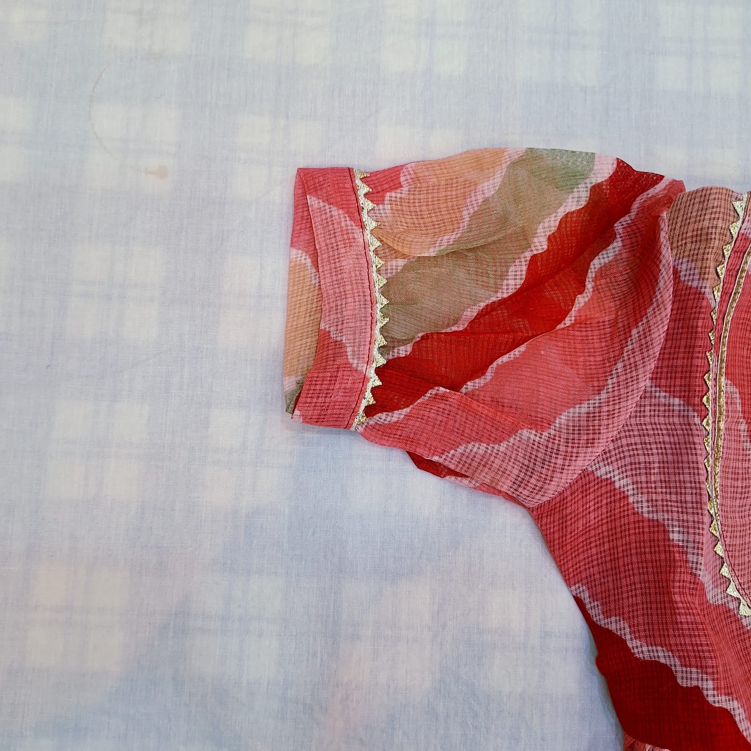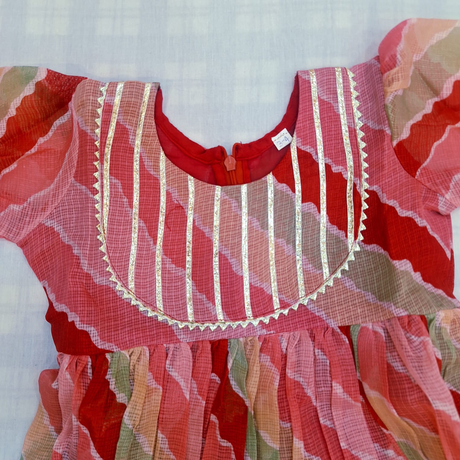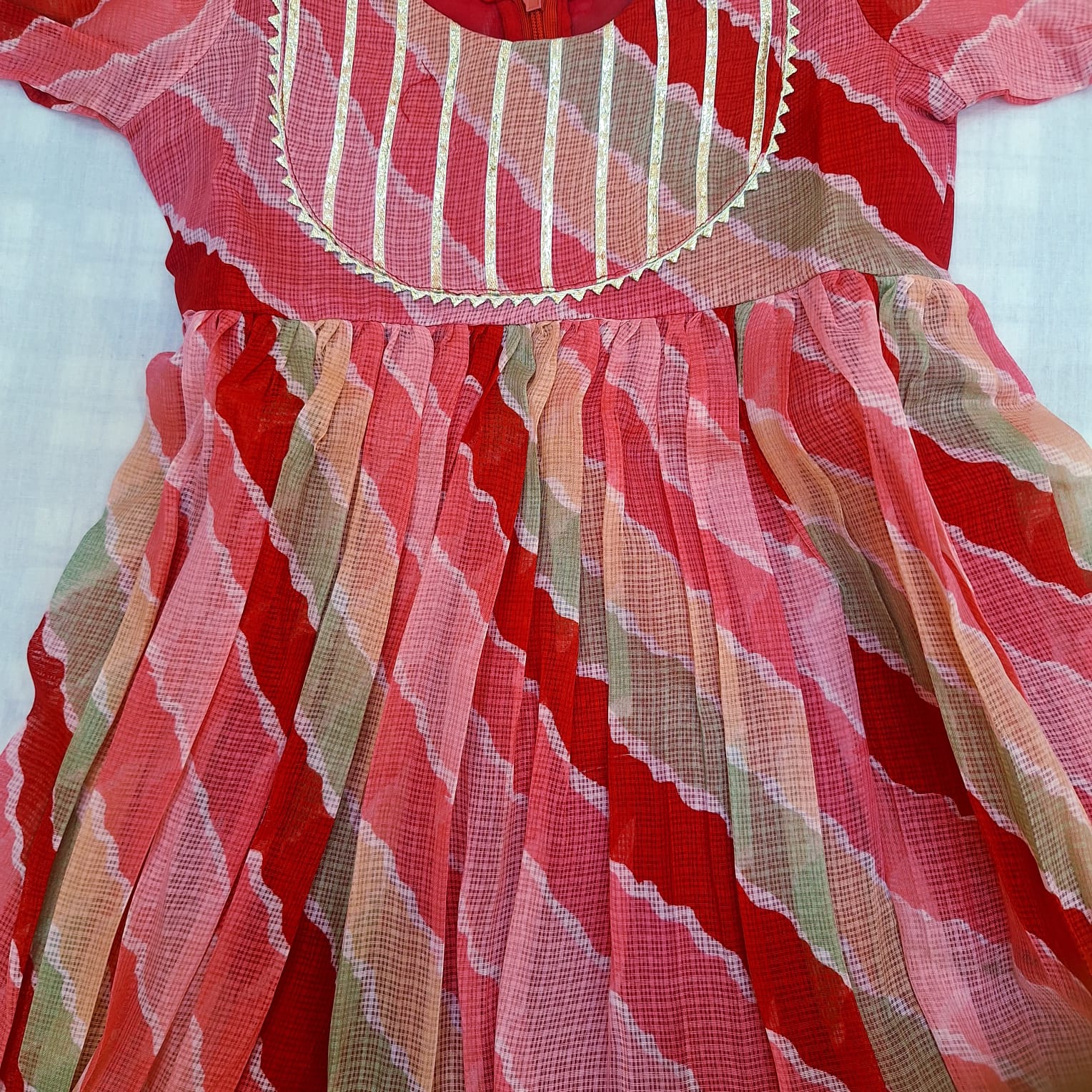 Multi Gota Frock Doriya Fabric Kids Set is a charming and comfortable outfit designed especially for little ones. Crafted in soft and breathable doriya fabric, the frock features vibrant multi-colour gota detailing that adds a festive sparkle and traditional touch. The lightweight texture ensures all-day comfort, while the flared silhouette gives a playful and graceful look. Perfect for festivals, family functions, and special occasions, this kids set beautifully blends comfort, colour, and ethnic elegance.