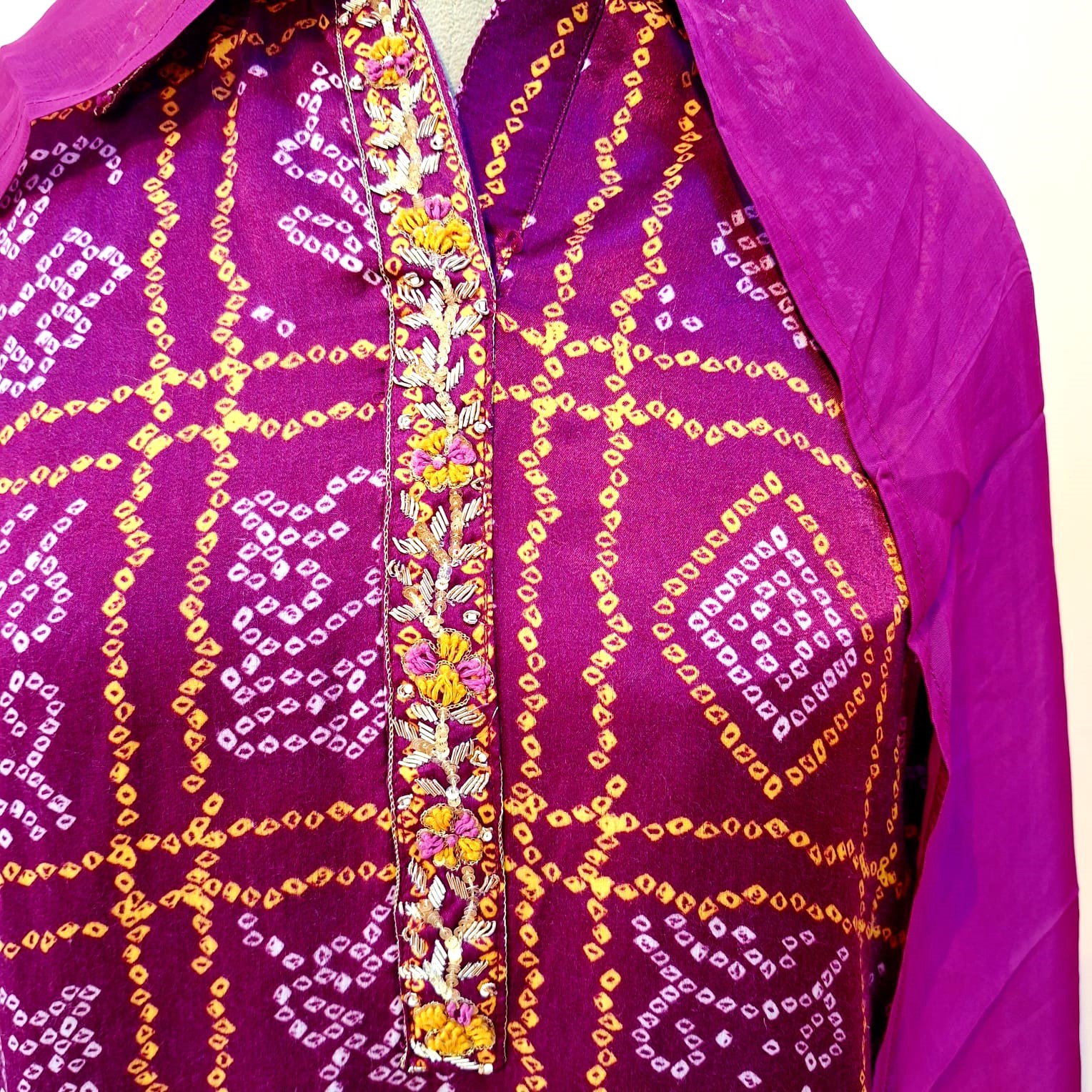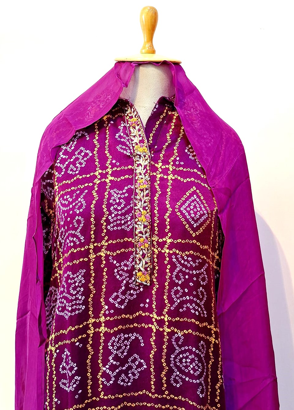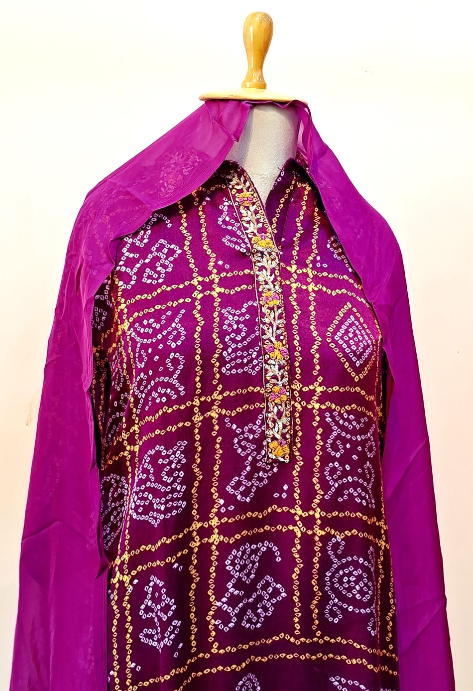 This elegant suit set is crafted in soft, lightweight crepe fabric with Bandhej-inspired digital prints for a vibrant and contemporary look. The Purple kurta is paired with straight-fit crepe pants for all-day comfort, while the matching digitally printed dupatta completes the ensemble. Ideal for festive occasions, family functions, and cultural celebrations.