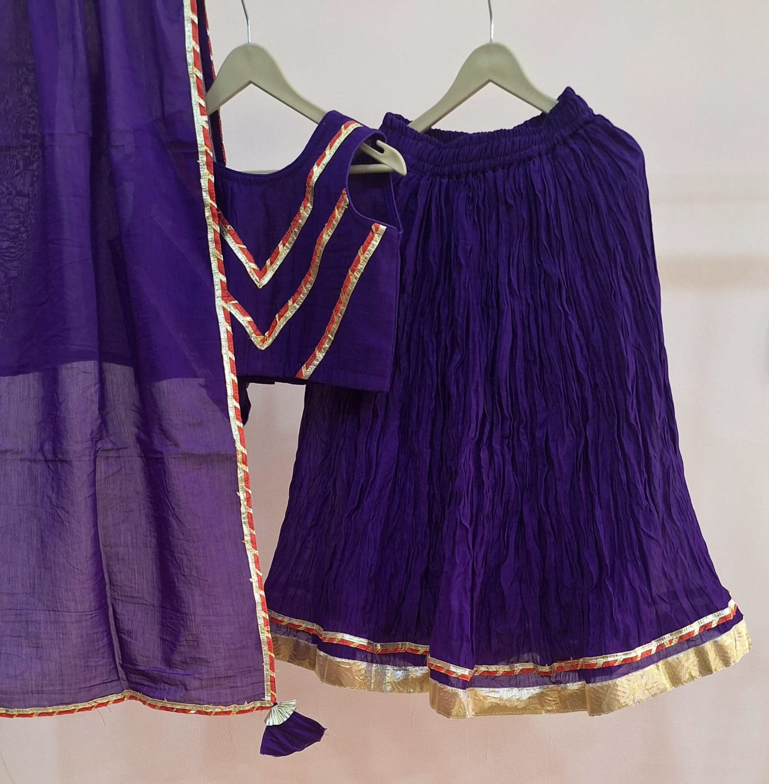 Fabric: Mul Chanderi (Top) | Crush Fabric (Skirt) | Mul Chanderi (Dupatta)