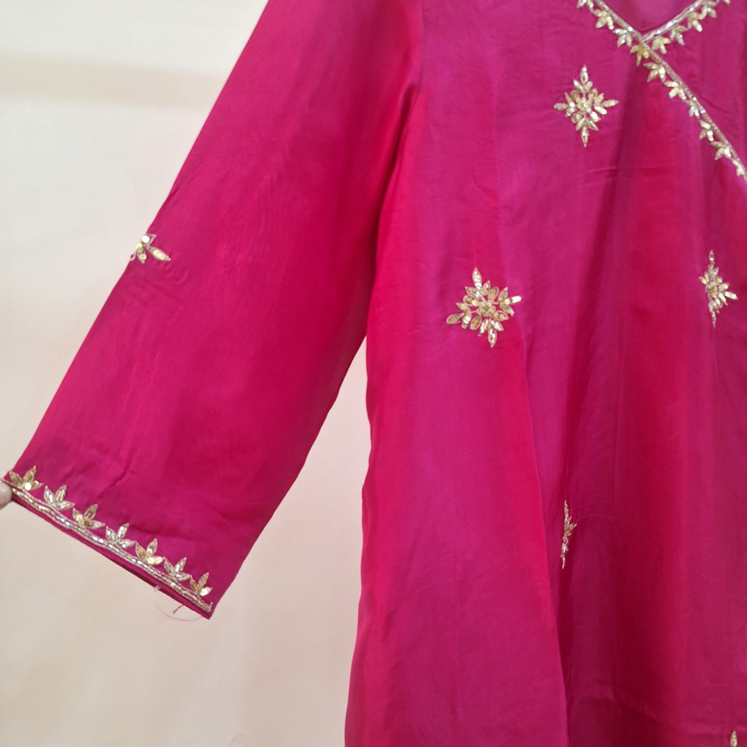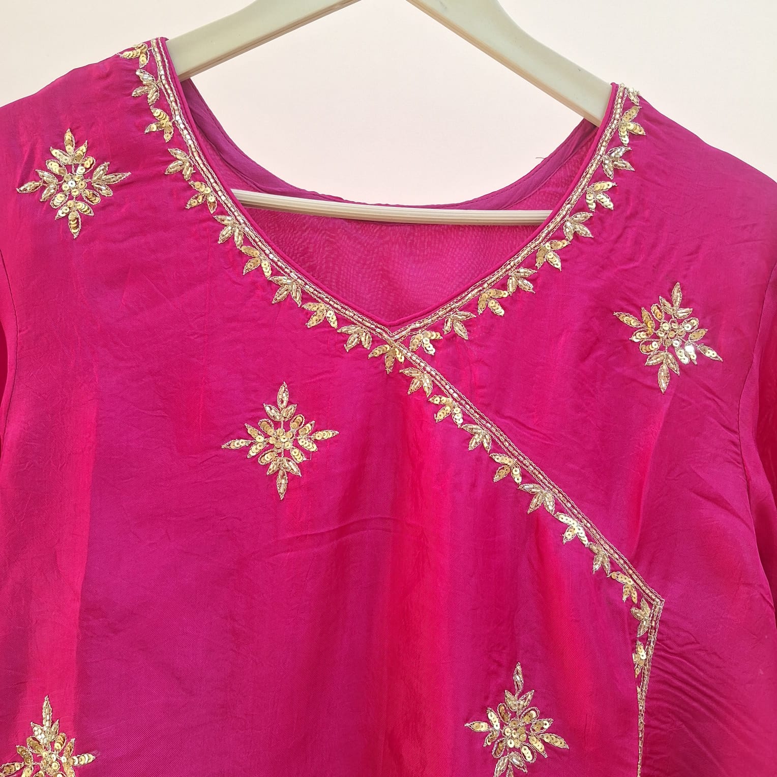 Rani Pink Summer Silk Handwork Kurti is a vibrant and elegant piece crafted to bring together comfort and festive charm. Made from lightweight summer silk, the kurti offers a smooth, breathable feel with a graceful fall. The rich rani pink hue is enhanced with intricate handwork detailing, adding a touch of traditional artistry and sophistication. Perfect for festive occasions, casual celebrations, or elegant day wear, this kurti stands out for its refined finish and timeless appeal.