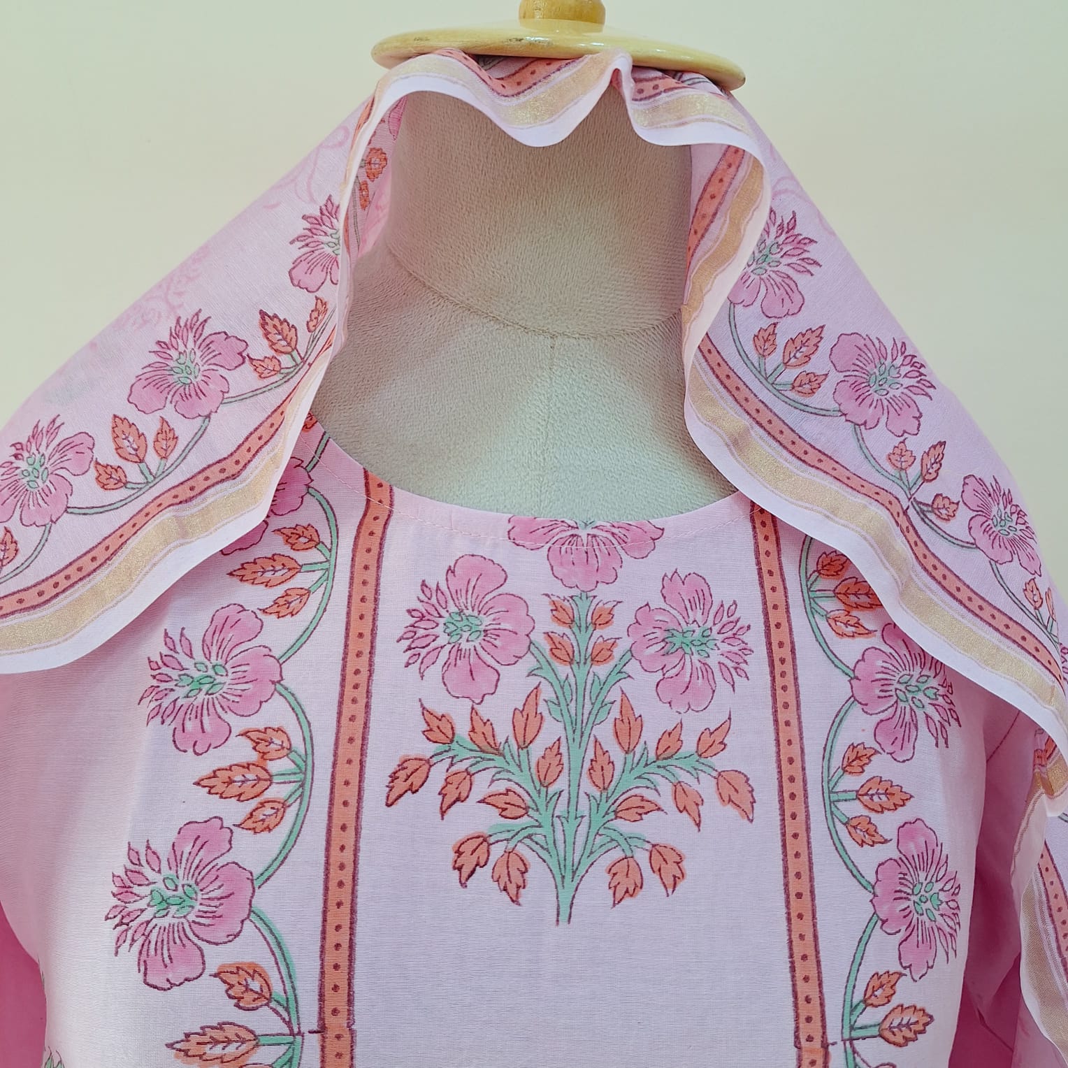 The Pink Printed Chanderi Suit Set features a beautifully crafted kurti. It comes with a matching pant and a soft, flowy Chanderi dupatta . The pink hue and elegant detailing give it a feminine and festive appeal. Perfect for celebrations, family gatherings, and ethnic occasions.