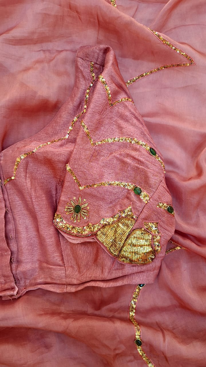 Elevate your ethnic elegance with this exquisite mouse brown tissue organza saree, adorned with intricate handwork detailing. The saree features a stunning blend of stones, cutdana, sequins, and lappa design beautifully crafted in cutwork embroidery, adding a rich and refined charm. Perfect for festive occasions, weddings, or evening celebrations, this saree captures timeless grace with a modern touch.